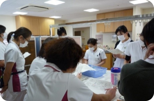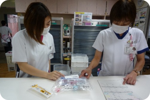 各薬剤師がそれぞれ担当病棟を持ち、処方の背景や患者さんの状態を直接確認しながら薬学的判断を行う業務です。病棟では、「なぜこの処方になっているのか」、「この患者さんに本当に合っているか」を、検査値や症状、生活背景を踏まえて考える力が求められます。 また、医師・看護師との距離が近く、処方変更や副作用についてその場で相談・提案できる環境があります。「疑問に思ったことを調べて終わり」ではなく、実際の治療にどう活かされたかを実感できる点が当院の特徴です。